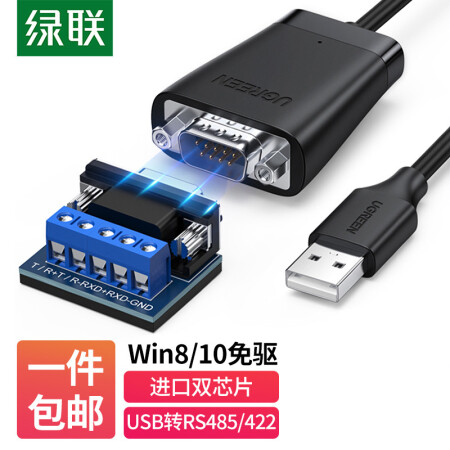 绿联 USB转RS422/485转换器 九针串口数据线电脑com口通信线转接线 工业级FT232芯片 USB转RS485/422串口线 0.5m