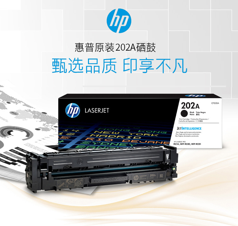 原装hp惠普202a硒鼓墨粉盒 m254dw m254nw m280nw m281fdw打印机墨盒 黑色 cf500a硒鼓 粉盒(1400页)