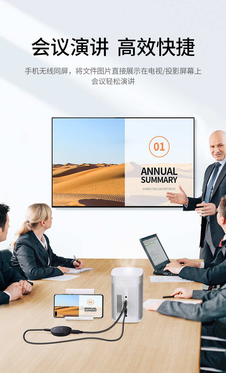 绿联 手机无线投屏器 4K高清hdmi音视频同屏传输器 适用苹果安卓华为手机电脑连接电视显示器投影仪线